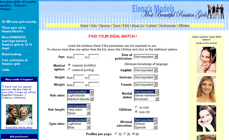 Elenasmodels is an international dating website that has been performing very well for several years. The aim of this platform is giving mature singles from all over the world a chance to find a partner and be happy. Of course, making new acquaintances in the mature age may be difficult, but, it is still possible. According to Elenasmodels.com reviews, thousands of single men and women have already found their soul mates. Everyone knows that a person, who looks well is also more confident. Here you can find only verified female profiles and also an advanced search engine. The platform serves as a convenient alternative to traditional dating.